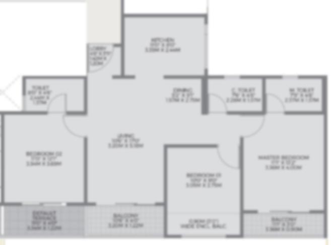 K-City present new-age 3 BHK apartment with carpet area 987 Sq. Ft. which are budget-friendly, comfortable living spaces with essential amenities.
